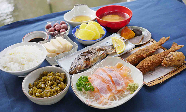 「産山は阿蘇の中でも田舎風情の強い地域ですが、中でもここは秘境。10軒が集まった小さな集落です」というご主人が持ってきた定食に驚いた。これぞ「川魚づくし」。しかも、すべての身が大ぶり。名物のヤマメの唐揚げは、2〜3匹付け。頭から尻尾まで食べられ、これを味わうがために福岡から来る人もいるというのも頷ける。おそるべし、産山の田舎。過剰すぎるサービス定食である。